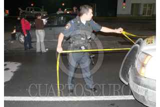 MONTERREY, NUEVO LEON 03SEPTIEMBRE2007.- La ejecución número 90 del año en la entidad se registra hoy por la noche cuando un hombre fue abordado en su automóvil por unos sicarios que viajaban en una camioneta y que le dispararon con fusiles de alto poder, en el Centro de la Ciudad. En el auto se encontró una credencial a nombre de Sergio Augusto Flores Arévalo, por lo que la Policía investiga si se trata del ahora ejecutado. FOTO: PEDRO KRISTIAN LOPEZ/CUARTOSCURO.COM