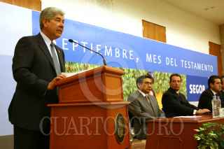 MEÍXCO. D.F. 04SEPTIEMBRE2007.-Abelardo Escobar Prieto Secretario de la Reforma Agraria y Francisco Javier Ramírez Acuña, Secretario de Gobernación inagurarón la campaña Septiembre Mes del Testamento, en la cual los notarios de todo el país reducirán sus honorarios y ampliarán sus horarios de atencion para que personas cuyo ingreso no exeda de cuatro salarios mínimos mensuales pueda a un bajo costo tener el otorgamiento de su testamento. FOTO:RICARDO CASTELAN CRUZ/CUARTOSCURO.COM