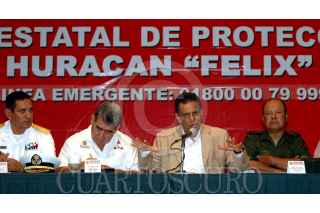 XALAPA, VERACRUZ 04SEPTIEMBRE2007.-Ante las posibles afectaciones que se puedan suscitar, ante el arribo del huracan Fèlix, en el estado de Veracruz principalmente la zona sur. Esta mañana se instalo el comando estatal de protección civil presidido por el gobernador del estado Fidel Herrera Beltran. FOTO:ISAAC AGUILAR/CUARTOSCURO.COM