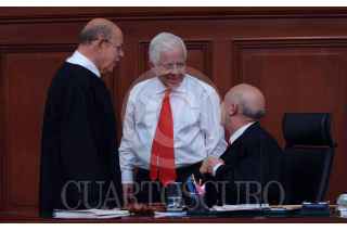 MÉXICO,D,F., 04SEPTIEMBRE2007.-Los ministros José de Jesús Gudiño Pelayo Genaro Góngora Pimentel y Guillermo Ortiz Mayagoitia durante el receso de la secion del dia de hoy, en la Suprema Corte de Justicia de la Nacion. FOTO:CUARTOSCURO.COM