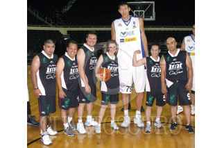 MONTERREY, NUEVO LEON, 04SEPTIEMBRE2007.- La agrupacion LMT, anteriormente conocida como Limite, asisitieron al entrenamiento del equipo de basquetbol de la ciudad "Fuerza Regia", en donde convivieron con ellos y jugaron por unos minutos, para apoyarlos en el inicio de la temporada de la Liga Mexicana de Basquet el próximo domingo. FOTO: PEDRO KRISTIAN LOPEZ/CUARTOSCURO.COM