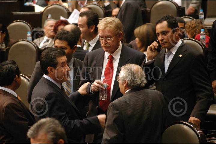 MÉXICO D.F. 06SEPTIEMBRE2007.-El diputado Javier González Garza coordinador de la banacada del PRD, dialoga con los dipùtados del PAN, Diodoro Carrasco y Juan José Rodríguez Prats durante la sesión en la Cámara de Diputados. FOTO: GUILLERMO PEREA/CUARTOSCURO.COM