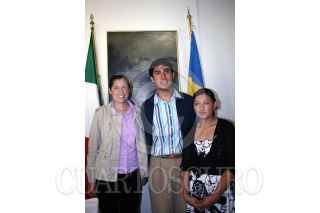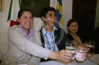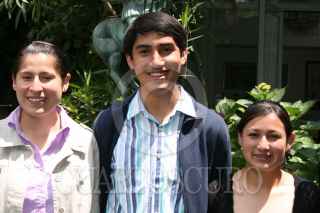 MEXÍCO. D.F. 06SEPTIEMBRE2007.-Dalia Graciela Díaz Gómez, Carlos Hernández Mejía y Adriana Alcántara Ruiz, ganadores del Premio Juvenil del Agua de Estocolmo en conferencia de prensa en la Enbajada de Suecia donde propusieron poner en marcha su proyecto de eliminacion de plomo por bioabsorción utilizando cascarón de Huevo. FOTO:RICARDO CASTELAN/CUARTOSCURO.COM