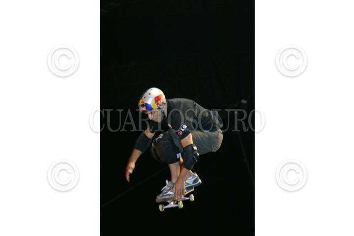 MÉXICO,D,F.,09SEPTIEMBRE2007.-Pierre Luc Gagnon desarrolla una de sus acrobacias durante la final del skate vert de los X Games en el Palacio de los Deportes. FOTO:SASHENKA GUTIERREZ/CUARTOSCURO.COM