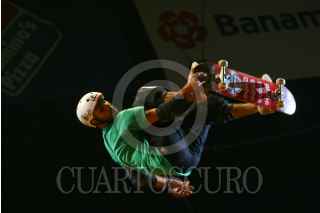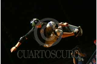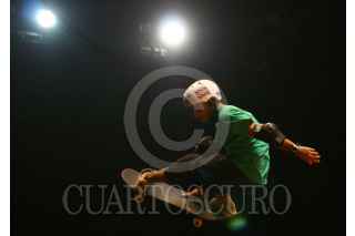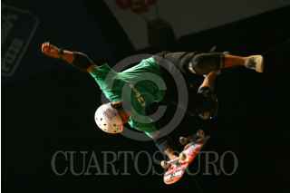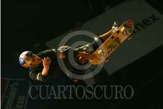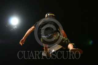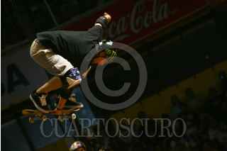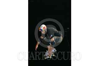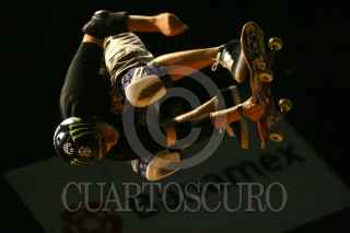 MÉXICO,D,F.,09SEPTIEMBRE2007.-Pierre Luc Gagnon desarrolla una de sus acrobacias durante la final del skate vert de los X Games en el Palacio de los Deportes. FOTO:SASHENKA GUTIERREZ/CUARTOSCURO.COM