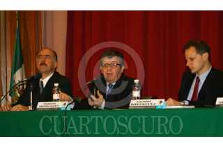 MÉXICO,D,F.,10SEPTIEBRE2007.-Jose Maria Zubirria ,Fernando Sánchez Ugarte Secretario de egresos y Alejandro Wernen Wainfeld Subsecretario de Hacienda durante la conferencia de prensa que ofrecieron para hablar del paquete económico 2008. FOTO:SASHENKA GUTIERREZ/CUARTOSCURO.COM