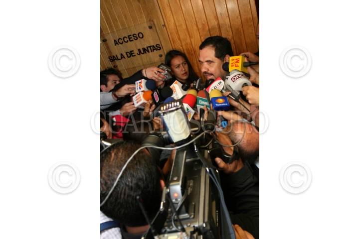 MÉXICO D.F. 10SEPTIEMBRE2007.-Manuel Bartlet ex-senador por el PRI saluda a Javier González Garza coordinador de la bancada del PRD durante la inauguración del Congreso Nacional de Radios Indigenas, en las instalaciones de la Cámara de Diputados. FOTO: GUILLERMO PEREA/CUARTOSCURO.COM