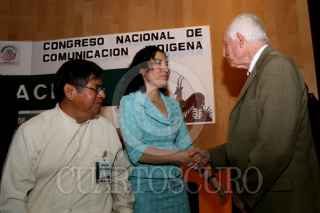 MÉXICO D.F. 10SEPTIEMBRE2007.-Manuel Bartlet ex-senador por el PRI saluda a Javier González Garza coordinador de la bancada del PRD durante la inauguración del Congreso Nacional de Radios Indigenas, en las instalaciones de la Cámara de Diputados. FOTO: GUILLERMO PEREA/CUARTOSCURO.COM