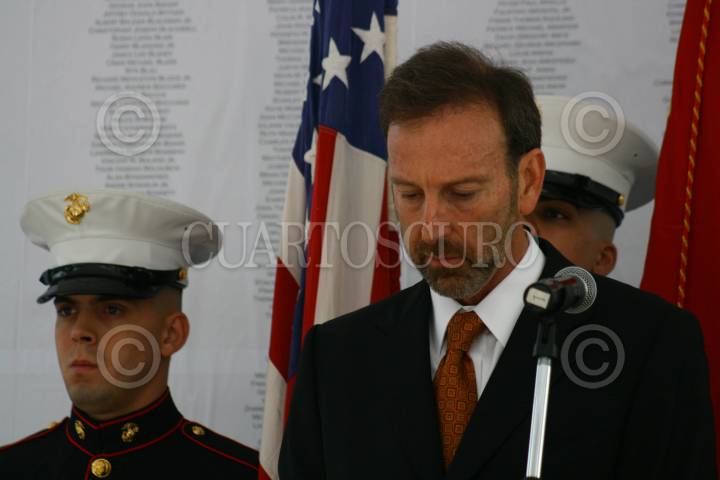 MÉXICO,D,F.,11SEPTIEMBRE2007.- Anthony Garza embajador de los Estados Unidos en México saluda a un soldado Estadounidense durante el homenaje que se rindió en la embajada de Estados Unidos a las víctimas de los atentados terroristas a las torres gemelas en Nueva York. FOTO:SASHENKA GUTIERREZ/CUARTOSCURO.COM