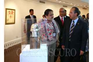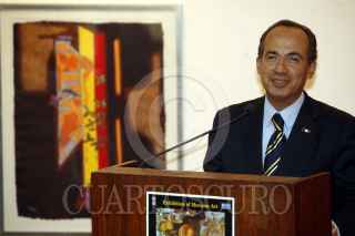 MUMBAI, REPUBLICA DE LA INDIA, 11SEPTIEMBRE2007.- Felipe Calderón Hinojosa, Presidente de México, durante la inauguración de la exhibición "Juan Soriano: Papel, Bonce, Plata y Tapíz", en la galería de arte moderno. FOTO: ARIEL GUTIERREZ/CUARTOSCURO.COM