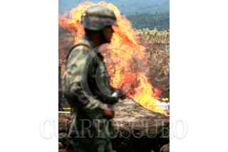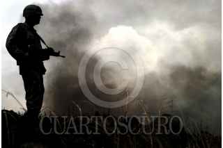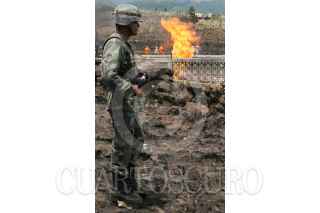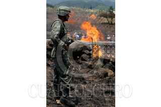 MALTRATA, VERACRUZ 11SEPTIEMBRE2007.- Despúes de 36 horas de haber explotado el gasoducto de Balastrera aun no deja de consumirse el remanente de gas natural. Hasta el momento elementos del ejercito nacional mantienen un cerco estrictamente vigilado. FOTO: SAÚL LÓPEZ ESCORCIA/CUARTOSCURO.COM
