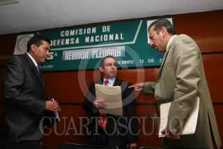 MÉXICO D.F. 12SEPTIEMBRE2007.-Los diputados Jesús Arredondo Velázquez y Marco Antinio Peyrot Solís y Pedro Montalvo Gómez, durante la reunión plenaria de la Comisión de la Defensa Nacional, en las instalaciones de la Cámara de Diputados. FOTO: GUILLERMO PEREA/CUARTOSCURO.COM