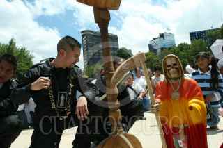 MÉXICO, D.F. 15SEPTIEMBRE2007.- Seguidores de la Santa Muerte anunciaron que construirán una estatua del mismo tamaño que el Ángel de la Independencia durante una peregrinación desde este punto hacia el Zócalo. FOTO: PAOLA HIDALGO/CUARTOSCURO.COM
