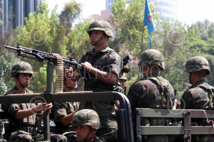 MÉXICO, D.F., 16SEPTIEMBRE2007.- Elemento del Ejército Nacional desfilaron por calles del Centro Histórico y Reforma, en conmemoración por el CXCVII de la Independencia. FOTO: SAÚL LÓPEZ/CUARTOSCURO.COM