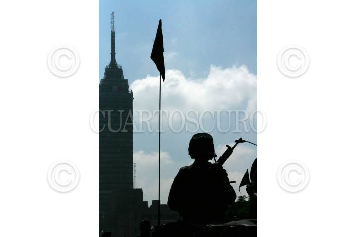 MÉXICO, D.F., 16SEPTIEMBRE2007.- Elemento del Ejército Nacional desfilaron por calles del Centro Histórico y Reforma, en conmemoración por el CXCVII de la Independencia. FOTO: SAÚL LÓPEZ/CUARTOSCURO.COM