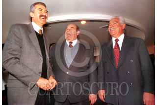 Alberto Juárez Blancas, dirigente de la Croc conversa con Roberto Madrazo Pintado, aspirante a dirigir el PRI. FOTO: Christian Palma/CUARTOSCURO.COM