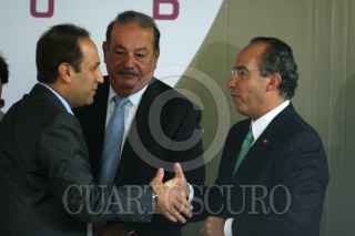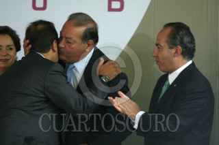 MÉXICO, D.F. 18SEPTIEMBRE2007.- El presidente Felipe Calderón Hinojosa y el empresario Carlos Slim durante la inauguración del Instituto CARSO de la salud. FOTO: PAOLA HIDALGO/CUARTOSCURO.COM