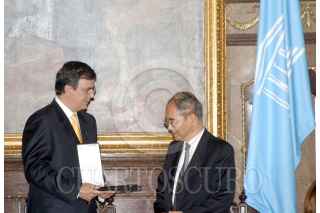 MÉXICO, D.F., 21SEPTIEMBRE2007.- Marcelo Ebrard Casaubón, Jefe de Gobierno le entregó las llaves de la ciudad a Koichiro Matsuura, Director General de la UNESCO, en el salón de cabildos del Antiguo Palacio del Ayuntamiento. FOTO: ILIANA TORRES/CUARTOSCURO.COM