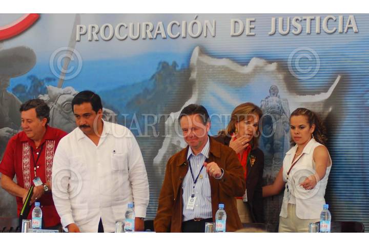 JIUTEPEC, MORELOS, 21SEPTIEMBRE2007.-El Procurador General de Justicia Eduardo Medina Mora y el Secretario del Estado Sergio Mata durante la XIX Conferencia Nacional de Procuración de Justicia. FOTO:CLAUDIA ARECHIGA/CUARTOSCURO.COM