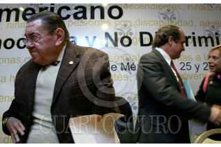 MÉXICO,D,F.,25SEPTIEMBRE2007.- Gilberto Rincón Gallardo, Amerigo Incalcaterra durante la sesión inagural del encuentro Iberoamericano sobre desarollo social,democracia y no discriminacion. FOTO:SASHENKA GUTIERREZ/CUARTOSCURO.COM