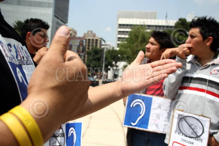 MÉXICO,D,F.,29SEPTOEMBRE2007.- Para conmemorar el día mundial de la lengua de señas, personas de la comunidad de sordomudos realizaron una marcha que partió del ángel de la indepenencia, hasta el hemiciclo a Juárez. FOTO:SASHENKA GUTIERREZ/CUARTOSCURO.COM