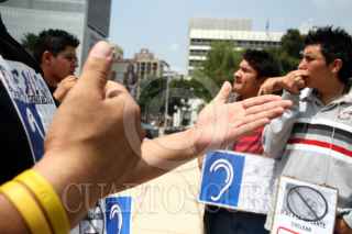 MÉXICO,D,F.,29SEPTOEMBRE2007.- Para conmemorar el día mundial de la lengua de señas, personas de la comunidad de sordomudos realizaron una marcha que partió del ángel de la indepenencia, hasta el hemiciclo a Juárez. FOTO:SASHENKA GUTIERREZ/CUARTOSCURO.COM