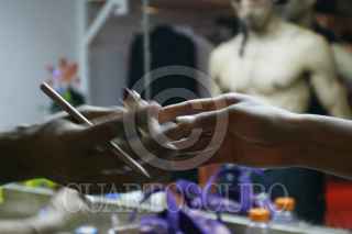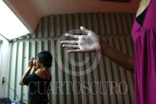 SAN LUIS POTOSÍ, SLP.01OCTUBRE2007.- El ensamble Rosas-Govaerts se preparan para entrar en escena para presentar su espectáculo Anamnesis, la blanca obscuridad en el teatro Raúl Gamboa, en el marco del Festival Internacional de Danza Contemporánea Lila López. FOTO: PAOLA HIDALGO/CUARTOSCURO.COM