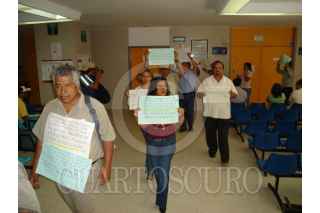 CHILPANCINGO, GUERRERO., 05OCTUBRE2007.- Trabajadores de la Universidad Autonoma de Guerrero (UAG), realizaron una protesta afuera de la clinica-hospital del ISSSTE, para denunciar la negligencia medica que ha sufrido en dicho nosocomio el profesor universitario Pablo Cuevas Salgado quien padece de diabetes, ya que le ha sido amputada la pierna del lado izquierdo y extirpado un ojo, al infectarsele una herida la cual no fue atendida con prontitud por los medicos que laboran en la clinica-hospital del ISSSTE donde se encuentra inernado desde hace mas de un mes. Foto: OSCAR ALVARADO/CUARTOSCURO.COM