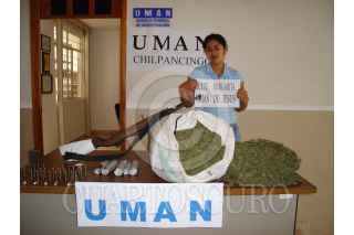 CHILPANCINGO, GUERRERO 05OCTUBRE2007.- Dulce Margarita Urias de Jesus es la persona que fue detenida por efectivos de la Unidad Mixta de Atencion al Narcomenudeo (UMAN) durante un operativo que realizaron en la poblacion del Ocotito, asegurandole 10 kilos de marihuana, 5 carrufos de marihuana, 6 grapas de cocaina, 28 cartuchos 7.62, 1 cartucho para M1y un fusil M1. Foto: OSCAR ALVARADO/CUARTOSCURO.COM