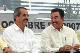LAPAZ,BAJACALIFORNIA.,08OCTUBRE2007.- José Ángel Cordoba Villalobos Secretario de Salud en compañia del gobernador del estado, Narciso Agundez durante la entrega las nuevas Unidades de caravanas para la salud. FOTO:EDUARDO MORALES/CUARTOSCURO.COM