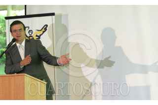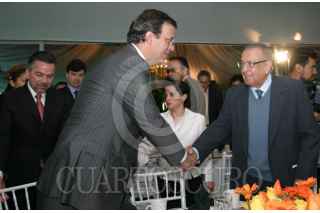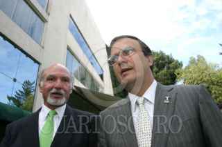 MEXICO,D.F.09OCTUBRE2007.- Marcelo Ebrad Casaubón, jefe de Gobierno del Distrito Federal y Juan Kaye López, presidente del Colegio de Arquitectos de la Ciudad a su salida de la presentación de la Convocatoria del Gobierno del Distrito Federal al Concurso Internacional "Plaza y Símbolo del Bicentenario" en el Colegio de Arquitectos de la Ciudad de México. FOTO:ROCIO ORTIZ/CUARTOSCURO.COM