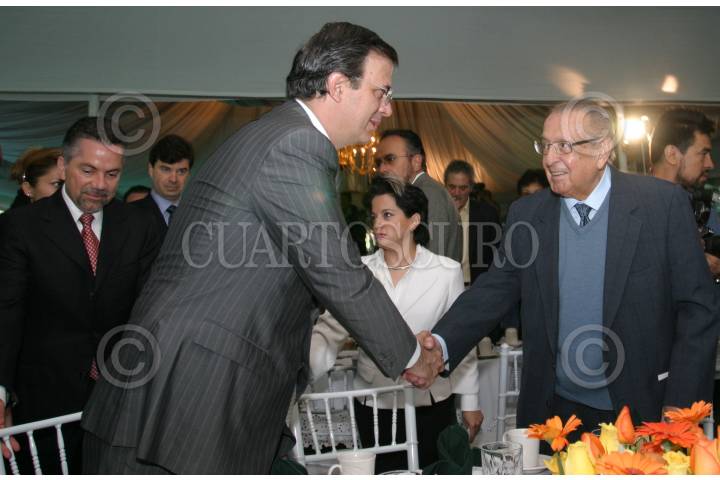 MEXICO,D.F.09OCTUBRE2007.- Marcelo Ebrad Casaubón, jefe de Gobierno del Distrito Federal y Juan Kaye López, presidente del Colegio de Arquitectos de la Ciudad a su salida de la presentación de la Convocatoria del Gobierno del Distrito Federal al Concurso Internacional "Plaza y Símbolo del Bicentenario" en el Colegio de Arquitectos de la Ciudad de México. FOTO:ROCIO ORTIZ/CUARTOSCURO.COM