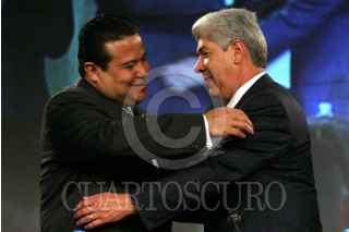 MÉXICO, D.F., 09OCTUBRE2007.- Ernesto Vidal y Rogelio Azcarraga, al finalizar la inauguración de la Semana de la Radio y la Televisión que se realiza en la capital. FOTO: MOISÉS PABLO/CUARTOSCURO.COM