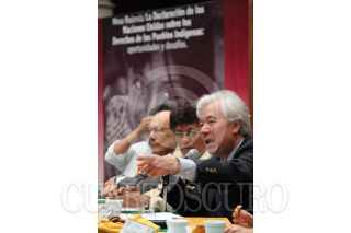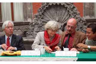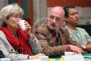 México D.F., a 12 de Octubre de 2007.- Mesa redonda. La declaración de las Nacionaes Unidas sobre los Derechos de los pueblos indígenas, que se llevo acabo en el Museo de la ciudad de México. Lourdes Arizpe, José del Val y Ediberto Hernández. FOTO: VICTORIA VALTIERRA/CUARTOSCURO.COM