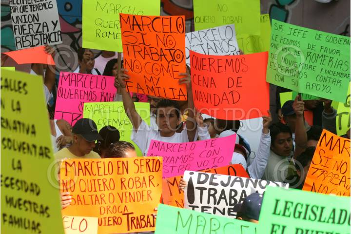 MÉXICO,D,F.,12OCTUBRE2007.- Debido a que las calles del centro historico se encuentran libres de vendedores ambulantes, estos mismos aprovechan y juegan futbol. FOTO:SASHENKA GUTIERREZ/CUARTOSCURO.COM