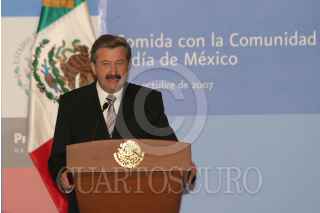 MÉXICO, D.F., 12OCTUBRE2007.- Benjamín Speckman, Presidente del Cómite Central de la Comunicación Judía de México, ofreció unas palabras a nombre de su comunidad al Presidente de México durante una comida en el Centro Deportivo Israelíta. FOTO: MOISÉS PABLO/CUARTOSCURO.COM