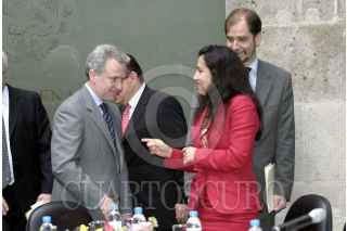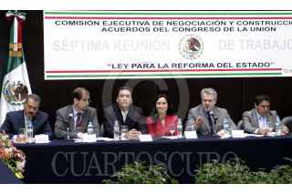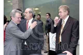 MÉXICO,D,F.,12OCTUBRE2007.- El presidente de la mesa directiva de la camara de senadores Santiago Creel Miranda saluda al senador Graco Ramirez y Javier Gonzalez Garza durante la séptima reunión de la comisión ejecutiva y construcción de acuerdos del congreso de la Unión. FOTO:CUARTOSCURO.COM