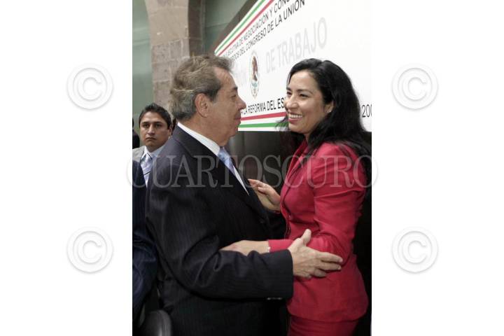 MÉXICO,D,F.,12OCTUBRE2007.- El presidente de la mesa directiva de la camara de senadores Santiago Creel Miranda saluda al senador Graco Ramirez y Javier Gonzalez Garza durante la séptima reunión de la comisión ejecutiva y construcción de acuerdos del congreso de la Unión. FOTO:CUARTOSCURO.COM