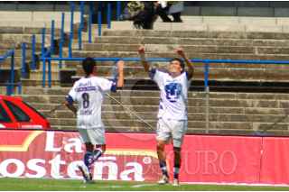 MÉXICO, DF., 14OCTUBRE2007.- Nacho Scocco festeja la tercer anotacion de pumas, en partido realizado en el Estadio Olimpico Universitario, donde los Pumas golean 3 - 0 a los Tigres de la U de NL. FOTO: CLAUDIA ARÉCHIGA/CUARTOSCURO.COM