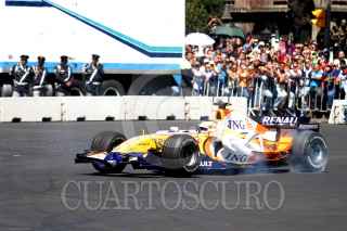 MÉXICO, D.F., 14OCTUBRE2007.- Se llevó a cabo el Renault Roadshow México, en donde un automóvil de la serie Fórmula 1 corrió por avenida Paseo de la Reforma. FOTO: ISAAC ESQUIVEL/CUARTOSCURO.COM