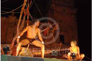 ZACATECAS, ZACATECAS.13OCTUBRE2007.- Ayer inicio el 6º Festival Internacional de Teatro de Calle en la plaza de armas de la ciudad de Zacatecas, ante una audiencia de unas 7 mil personas que presenciaron la obra El mono de Sadieu, de la compañía Circus Baobab de Ginea y Francia. FOTO: CARLOS SEGURA/CUARTOSCURO.COM
