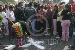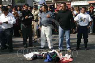 CHIMALHUACAN, EDOMEX., 18OCTUBRE2007.- Una madre y su hijo de cinco años de edad, perdieron la vida despues de ser arrollados por un camión de trasporte público cuando se dirigian al prescolar. Los hechos ocurrieron sobre la avenidad del Peñon al rededor de las 9 de la mañana. En el lugar vecinos inconformes se manifestaron cerrando ambas arterias de la avenida del Peñon. FOTO: SAÚL LÓPEZ/CUARTOSCURO.COM