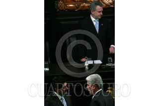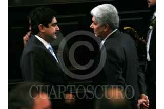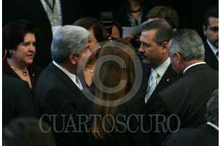 MÉXICO, D.F., 17OCTUBRE2007.- Manuel Espino, Presidente Nacional del PAN y Francisco Ramírez Acuña, Secretario de Gobernación, durante la sesión solemne en la que se entregó post mortem la medalla Belisario Dominguez a el panista Carlos Castillo Peraza, en el Senado de la República. FOTO: MOISÉS PABLO/CUARTOSCURO.COM