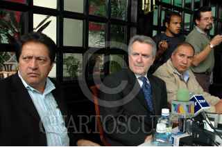 ZACATECAS, ZACATECAS, 19OCTUBRE2007.- José Isabel Trejo, senador del PAN, Santiago Creel, Presidente de la Mesa Directiva del Senado y Martín Gámez Rivas, Presidente del Comité Directivo Estatal, ofrecieron una conferencia de prensa para hablar sobre el proceso interno del PAn en su elección para líder nacional. FOTO: CUARTOSCURO.COM