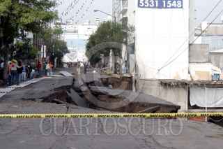 MÉXICO, D.F., 19OCTUBRE20007.- Gabriela Cuevas, delegada en Miguel Hidalgo, acudió a la calle de Andromaco en la colonia Ampliación Granada, en la que se presentó un hundimiento de varios metros de diametro en lo que era una construcción de un edificio. FOTO: PEDRO MARRUFO/CUARTOSCURO.COM