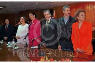 Los candidatos del PRI a la Presidencia y Secretaria Géneral, Beatriz Paredes, y Roberto Madrazo acompañados de Dulce Maria Zauri Riancho y Roque Villanueva dijeron que estan unidos y el fraude de PEMEX no les afecta. FOTO: Eunice Adorno/CUARTOSCURO.COM