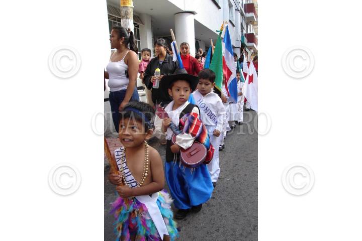 CHILPANCINGO, GUERRERO., 24OCTUBRE2007.- Niños de diferentes kinder durante el desfile que realizaron por las principales calles y avenidas de la capital del estado, para conmemorar el 68 aniversario de la Organizacion de las Naciones Unidas (ONU), donde el principal lema fue pedir por la paz en el mundo, soltando al finalizar el desfile palomas y globos blancos. FOTO: OSCAR ALVARADO/CUARTOSCURO.COM