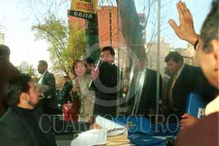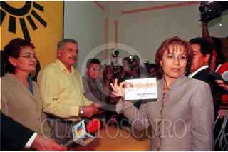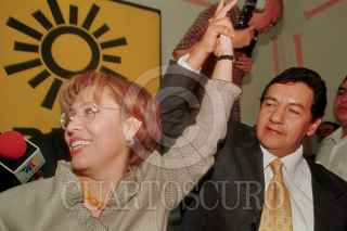 Rosario Robles e Higinio Martínez celebran después de registrar su candidatura por la dirigencia del PRD. FOTO:Christian Palma/CUARTOSCURO.COM