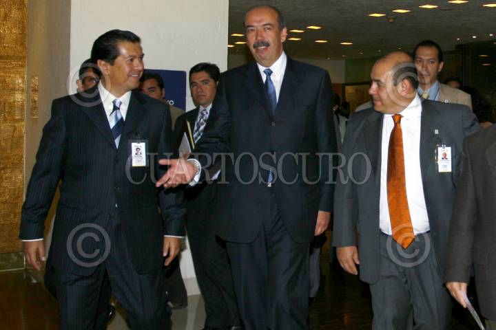 MÉXICO, D.F. 25OCTUBRE2007.- Rodolfo Félix Cárdenas, procurador de justicia del Distrito Federal, José Ángel Ávila, secretario de gobierno local y Abel Villicaña Estrada, procurador de EDOMEX durante la Reunión Regional de Procuradores Generales de la Zona Centro. FOTO: PAOLA HIDALGO/CUARTOSCURO.COM
