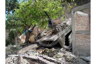 CHILPANCINGO, GUERRERO., 25OCTUBRE2007.- Aspecto de como quedo la casa de la familia Alcocer Solano ubicada en la colonia primero de Mayo, debido a un deslizamiento de tierra provocado por las intensas lluvias que se registraron en dias pasados en la capital del estado. FOTO: OSCAR ALVARADO/CUARTOSCURO.COM
